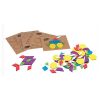 Tangram básico de madera que facilita el aprendizaje de la geometría, estimula a creatividad, fomenta la orientación y estructuración espacial, desarrolla el conocimiento lógico-matemático, ayuda a la coordinación ojo-mano, mejora la atención y la percepción visual, estimula la memoria y el aprendizaje de colores.